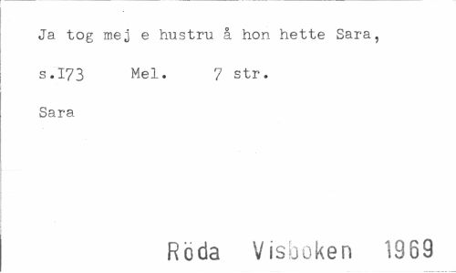 //// Ja tog mej e hustru å hon hette Sara, //// s.I73 Mel. 7 str. //// Sara //// Röda Visboken 1959 ////