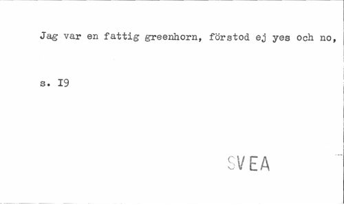 //// Jag var en fattig greenhorn, förstod ej yes och no, s. 19 //// SVEA ////