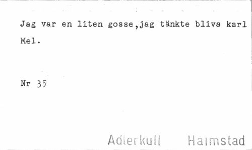 //// Jag var en liten gosse,jag tänkte bliva karl Mel. //// Nr 35 //// Adlerkuli Halmstad ////