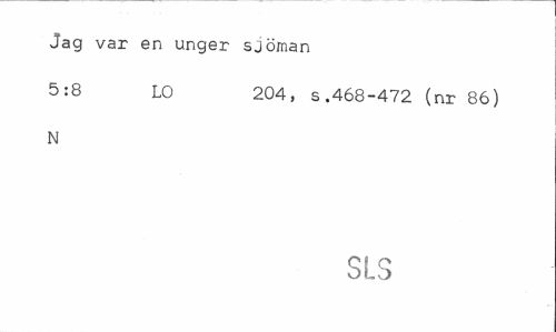 //// Jag var en unger sjöman //// 5:8 LO 204, s.468-472 (nr 86) //// N //// SLS ////