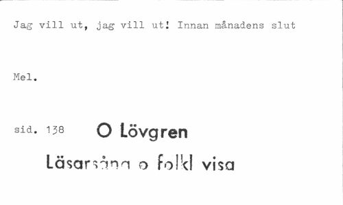 //// Jag vill ut, jag vill uti Innan månadens slut Mel. //// sid. 138 O Lövgren //// Läsarsånn o folk! visa ////