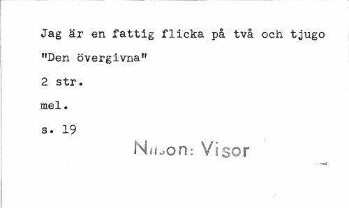 //// Jag är en fattig flicka på två och tjugo "Den övergivna" 2 str. mel. s. 19 //// Nii.on: Visor ////