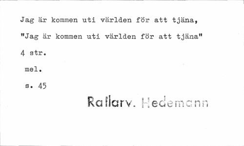 //// Jag är kommen uti världen för att tjäna, "Jag är kommen uti världen för att tjäna" 4 str, mel. s. 45 //// Ro flarv. I;edemc nn ////