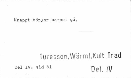 //// Knappt börjar barnet gå, //// Turesson,Wärm!,Kult.Trad //// Del IV, sid 61 g^-j jy ////