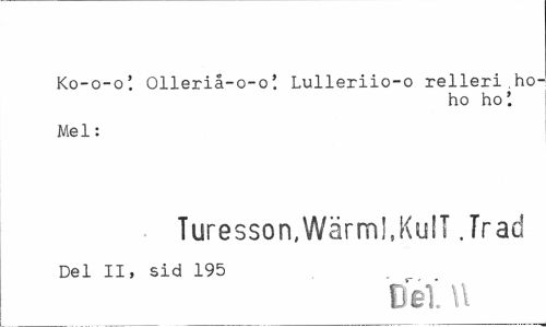 //// Ko-o-o! Olleriå-o-o! Lulleriio-o relleri.ho- //// ho ho'. //// Mel: //// Turesson,Wärml.KulT. Trad //// Del II, sid 122 //// Del'. U ////