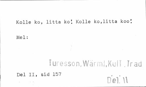 //// Kolle ko, litta ko'. Kolle ko,litta koo'. Mel: //// Turesson,Wärmi.KulI .Irad //// Del II, sid 157 //// ¦ Del U ////