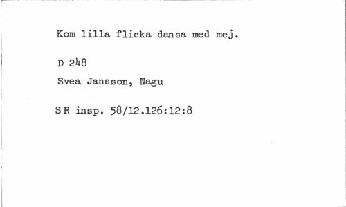 //// Kom lilla flicka dansa med mej. D 2kQ //// Svea Jansson, Nagu SR insp. 58/12.126:12:8 ////