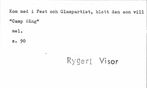 //// Kom med i Fest och Glampartiet, blott den som vill "Camp Sång" mel. s. 90 //// Rygerf Visor ////