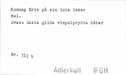 //// Konung Erik på sin luta leker Mel. //// Svas: Sakta glida vimpelprydda båtar Nr- 311 b //// Adlerkull IFGH ////