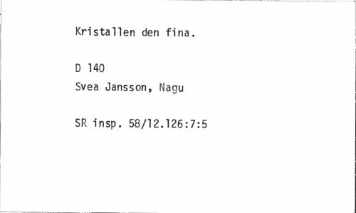 //// Kristallen den fina. D 140 //// Svea Jansson, Nagu SR insp. 58/12.126:7:5 ////