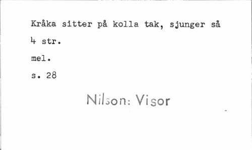 //// Kråka sitter på kolla tak, sjunger så k str. mel. s. 28 //// Nilson: Visor ////