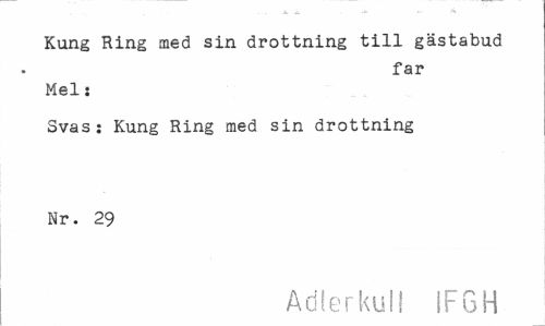 //// Kung Ring med sin drottning till gästabud //// far //// Mel: //// Svas: Kung Ring med sin drottning Nr. 29 //// Adlerkull IF6H ////