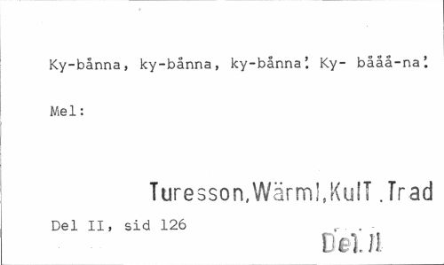//// Ky-bånna, ky-bånna, ky-bånna'. Ky- bååå-na'. Mel: //// Turesson,Wärml.KulT .Träd //// Del II, sid 126 r . . //// Del II ////