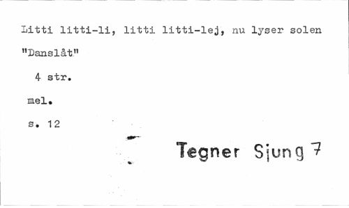 //// iitti litti-li, litti litti-lej, nu lyser solen "Danslåt" //// 4 str. mel» s. 12 //// Tegnér Sjung 7 ////