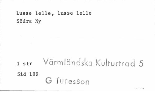 //// Lusse lelle, lusse lelle Södra Ny //// i str Värmländska Kuhurfrad 5 //// Sid 109 //// G TuresSon ////