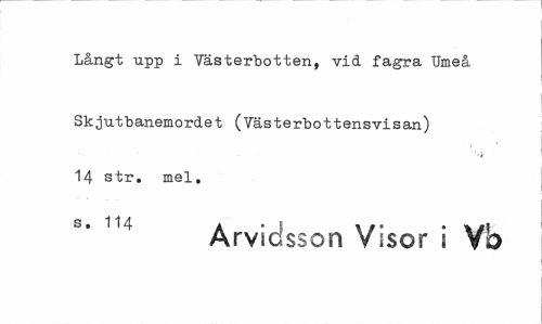 //// Långt upp i Västerbotten, vid fagra Umeå //// Skjutbanemordet (Västerbottensvisan) 14 str. mel. //// 114 Arvidsson Visor i Vb ////