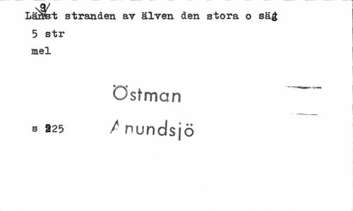 //// Lä^Bt stranden av älven den stora o säg 5 str mel //// Östman " //// s 925 /nundsjö ////