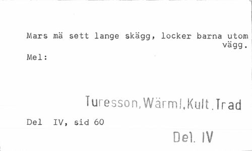 //// Mars mä sett länge skägg, locker barna utom //// vägg. //// Mel: //// Turesson,Wärml,Kult.Trad //// Del IV, sid 60 //// Del. IV ////