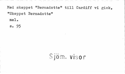 //// Med skeppet "Bernadotte" till Cardiff vi gick, "Skeppet Bernadotte" mel. s. 95 //// Sjöm. visor ////