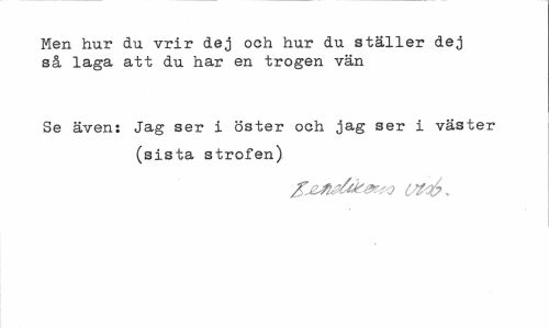 //// Men hur du vrir dej och hur du ställer dej så laga att du har en trogen vän //// Se även: Jag ser i öster och jag ser i väster (sista strofen) ////