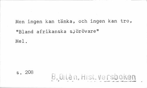 //// Men ingen kan tänka, och ingen kan tro, //// "Bland afrikanska sjörövare" //// Mel. //// s. 208 //// b,.uiie a. Hist. versboken ////