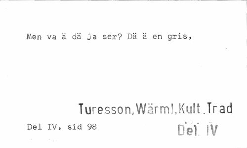 //// Men va ä dä ja ser? Dä ä en gris, //// Turesson.Wärml.Kult .Trad //// Del IV, sid 98 0^]' |y ////