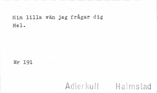 //// Min lilla vän jag frågar dig Mel. //// Nr 191 //// Adlerkull Halmstad ////