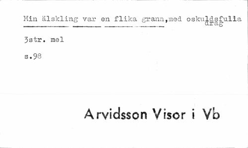 //// Min älskling var en flika grann,med oskuldsfulla //// 3str. mel s .98 //// Arvidsson Visor i Vb ////