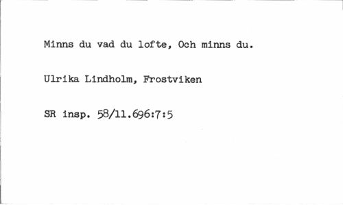 //// Minns du vad du löfte, Ooh minns du. Ulrika Lindholm, Frostviken SR insp. 58/11.696:7:5 ////