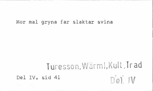 //// Mor mal gryna far slaktar svina //// Turesson, Wärml. Kult. Trad //// Del IV, sid 41 r- ' ' ; - ////