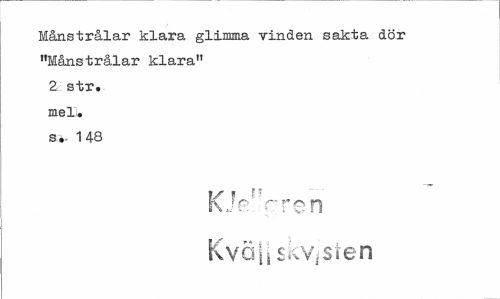 //// Månstrålar klara glimma vinden sakta dör "Månstrålar klara" 2 str. mer. s. 148 //// KJe rren Kväii skVj sten ////
