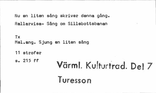 //// Nu en liten sång skriver denna gång. Rallarvisa- Sång om Sillebottsbanan //// Tx //// Mel.ang. Sjung en liten sång 11 strofer //// Värml. Kulturtrad. Del 7 Turesson ////