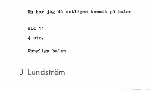 //// Ku har jag då entligen kommit på balen //// sid 11 4 str. //// Kungliga balen //// J Lundström ////