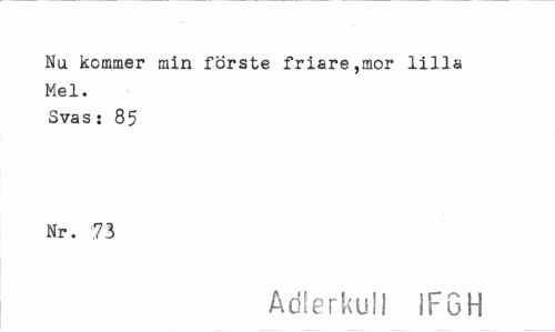 //// Na kommer min förste friare,mor lilla Mel. //// Svas: 85 Nr. .73 //// AdSerkull IF G H ////