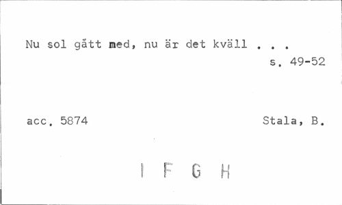 //// Nu sol gått ned, nu är det kväll . . . //// s. 49-52 //// acc. 5874 Stala, B. //// I F 6 H ////