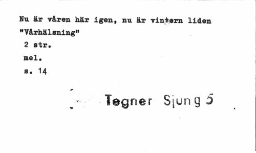 //// Nu är råren här igen, nu är vintern liden "Vårhälsning" 2 str. mel. s. 14 //// -Tegner Sjung 5 ////