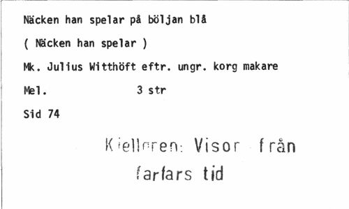//// Näcken han spelar på böljan blå ( Näcken han spelar ) //// Mk, Julius Witthöft eftr. ungr. korg makare Mel. 3 str //// Sid 74 //// Kielinrerv. Visor från (arfars tid ////
