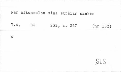 //// Nar aftonsolen sina strålar sänkte //// T-s- BO 532, s. 267 (nr 152) //// N //// SLS ////