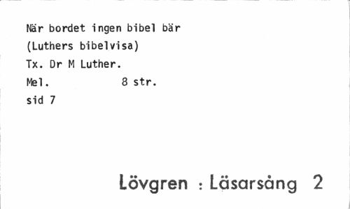 //// När bordet ingen bibel bär (Luthers bibelvisa) Tx. Dr M Luther. Mel. 8 str. //// sid 7 //// Lövgren : Läsarsång 2 ////
