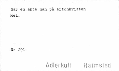 //// När en äkta man på aftonkvisten //// Mel. //// Nr 291 //// Adlerkull Halmstad ////