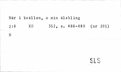 //// När i kvällen, o min älskling //// 2:8 KO 352, s. 488-489 (nr 201) //// N //// SLS ////