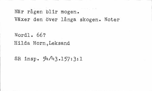 //// När rågen blir mogen. //// Växer den över långa skogen. Noter //// Norell. 66? Hilda Horn,Leksand //// SR insp. 5**A3.157:3:1 ////
