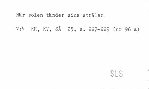 //// När solen tänder sina strålar //// 7zb KH, KV, SÅ 25, s. 227-229 (nr 96 a) //// SLS ////
