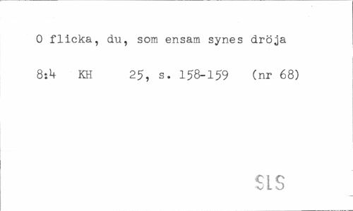 //// O flicka, du, som ensam synes dröja 8:*+ KH 25, s. 158-159 (nr 68) //// SLS ////