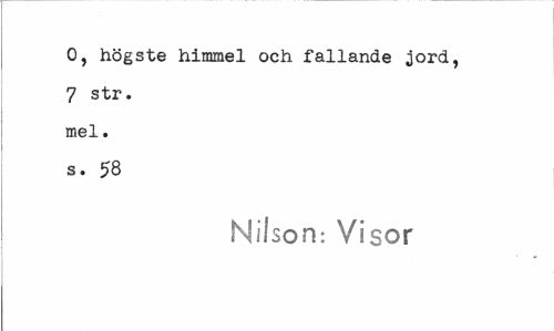 //// O, högste himmel och fallande jord, 7 str. mel. s. 58 //// Nilson: Visor ////