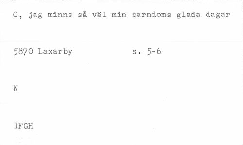 //// O, jag minns så väl min barndoms glada dagar //// 5870 Laxarby s. 5-6 //// N //// IFGH ////