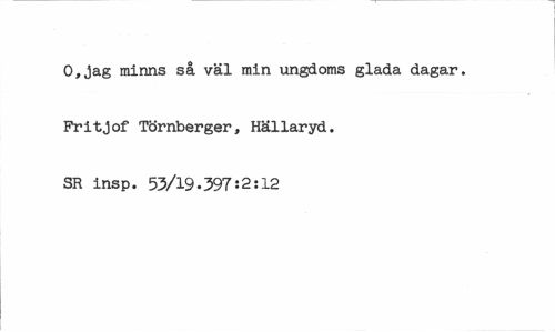 //// O,jag minns så väl min ungdoms glada dagar, Fritjof Törnberger, Hällaryd. SR insp. 55/19-397:2:12 ////