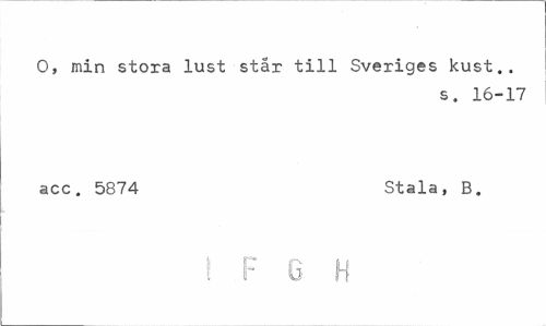 //// O, min stora lust står till Sveriges kust.. //// s. 16-17 //// acc. 5874 Stala, B. //// I F G H ////