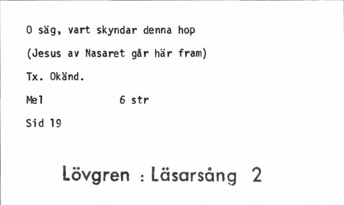 //// O säg, vart skyndar denna hop (Jesus av Nasaret går här fram) Tx. Okänd. //// Mel 6 str //// Sid 19 //// Lövgren : Läsarsång 2 ////