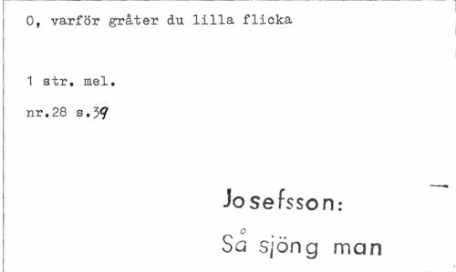 //// O, varför gråter du lilla flicka //// 1 str. mel. nr.28 s.3<? //// Josefsson.- //// o //// Sa sjöng man ////